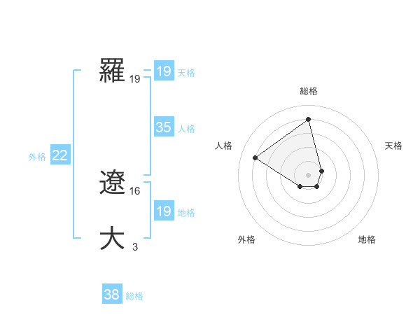 羅 遼大さんの総格は38画の4点!