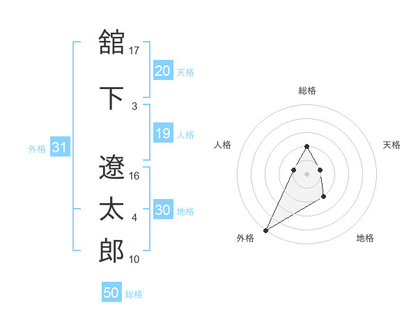 舘下 遼太郎さんを姓名の画数から五運を鑑定