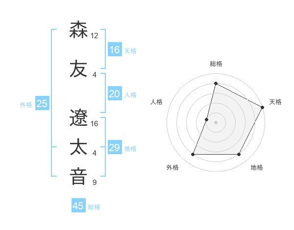 森友 遼太音さんを姓名の画数から五運を鑑定