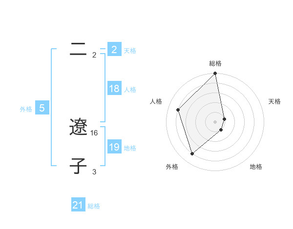 二 遼子さんの総格は21画の5点!