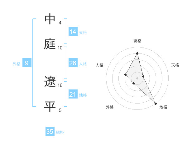 中庭 遼平さんの総格は35画の4点!