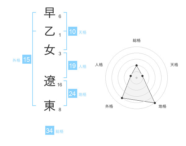 早乙女 遼東さんを姓名の画数から五運を鑑定