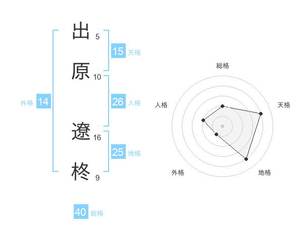 出原 遼柊さんを姓名の画数から五運を鑑定