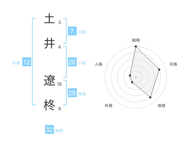 土井 遼柊さんを姓名の画数から五運を鑑定