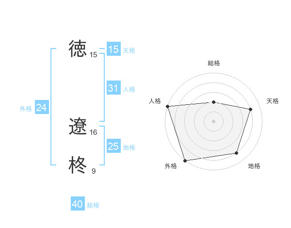 徳 遼柊さんの外格は24画の5点!