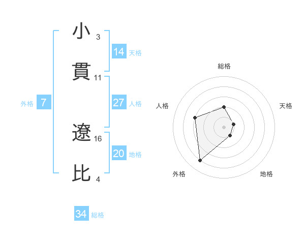 小貫 遼比さんを姓名の画数から五運を鑑定