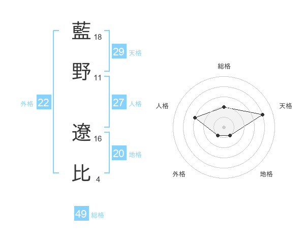 藍野 遼比さんを姓名の画数から五運を鑑定