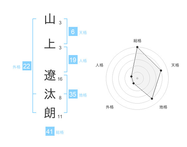 山上 遼汰朗さんを姓名の画数から五運を鑑定