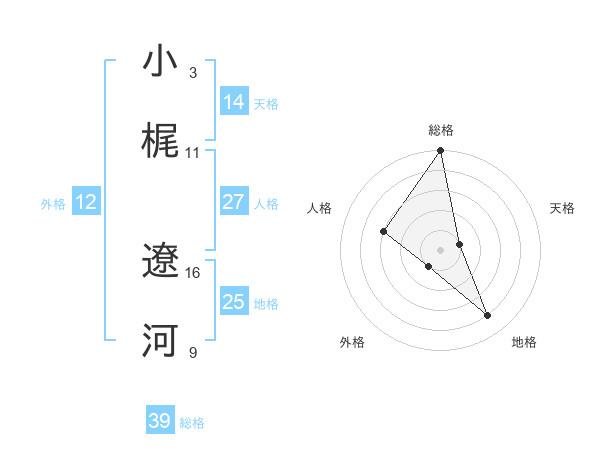 小梶 遼河さんを姓名の画数から五運を鑑定