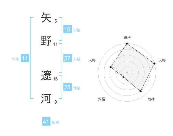 矢野 遼河さんの総格は41画の5点!