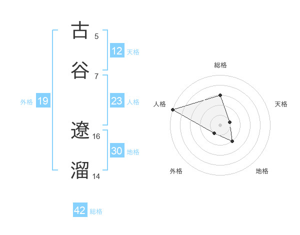 古谷 遼溜さんを姓名の画数から五運を鑑定