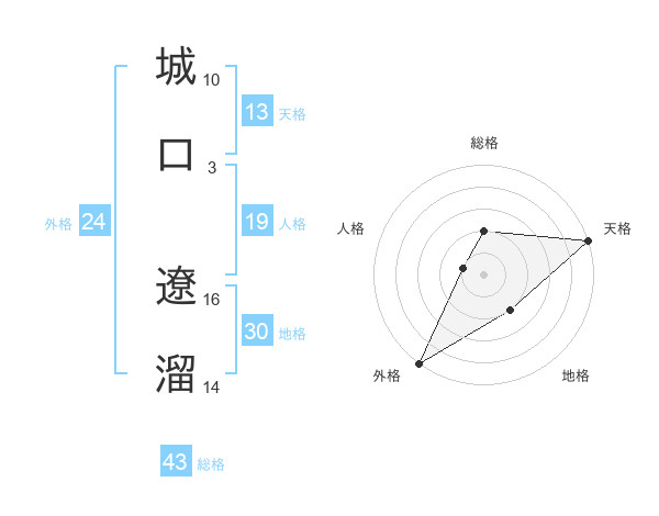 城口 遼溜さんを姓名の画数から五運を鑑定
