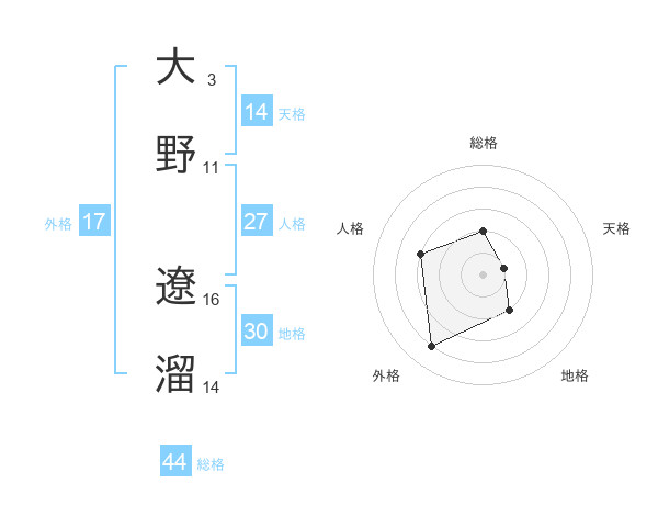 大野 遼溜さんを姓名の画数から五運を鑑定