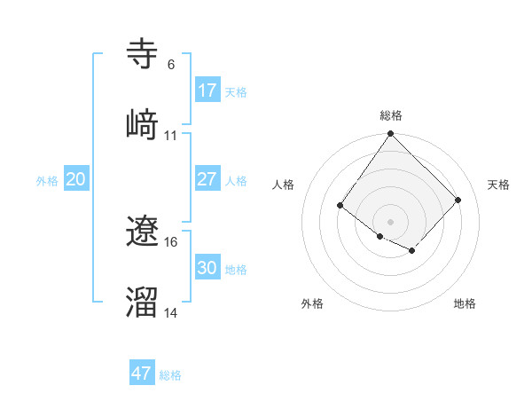 寺﨑 遼溜さんの総格は47画の5点!