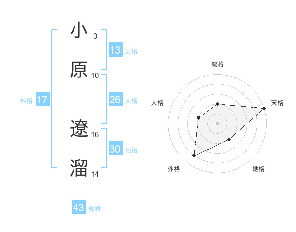 小原 遼溜さんの総格は43画の2点!