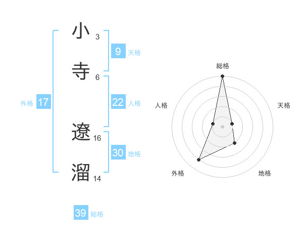 小寺 遼溜さんの総格は39画の5点!
