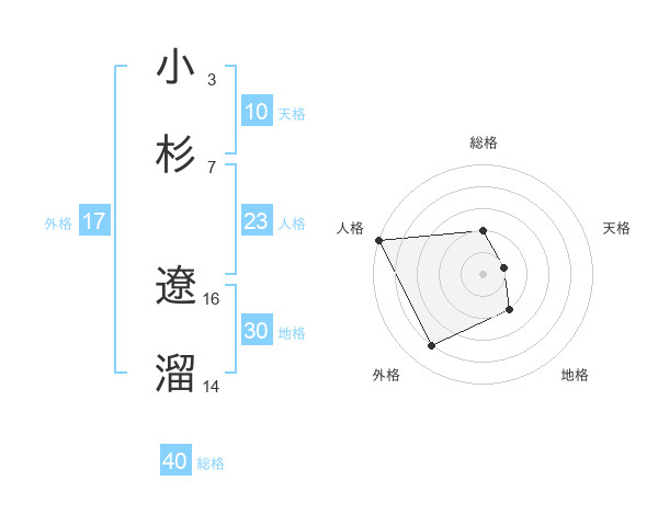 小杉 遼溜さんの総格は40画の2点!
