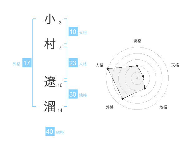 小村 遼溜さんを姓名の画数から五運を鑑定