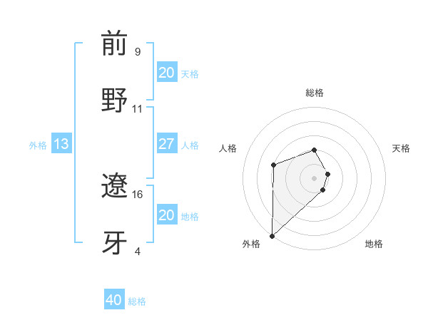 前野 遼牙さんを姓名の画数から五運を鑑定