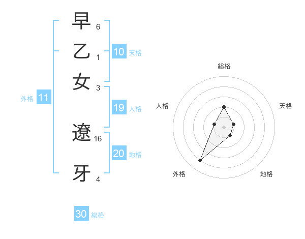 早乙女 遼牙さんを姓名の画数から五運を鑑定
