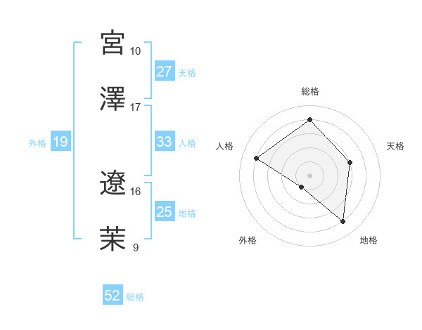 宮澤 遼茉さんを姓名の画数から五運を鑑定