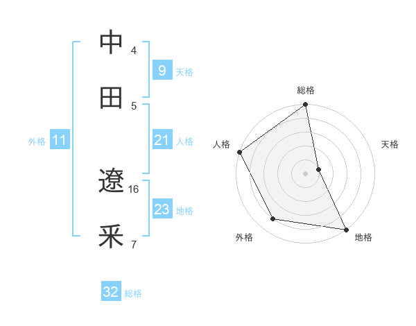 中田 遼釆さんの総格は32画の5点