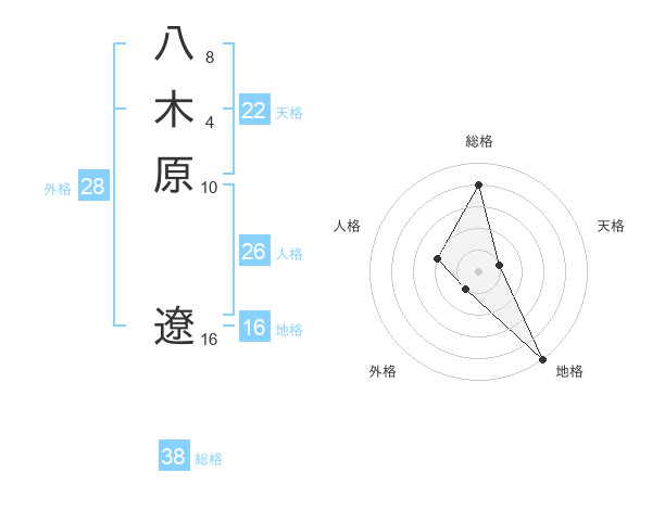 八木原 遼さんの総格は38画の4点!