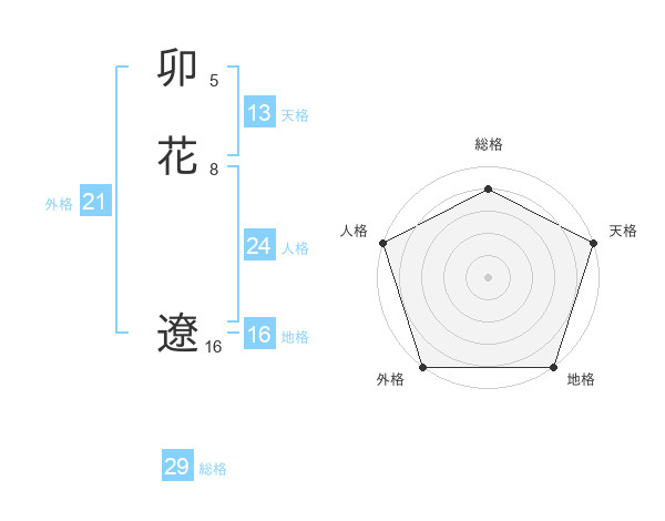 卯花 遼さんの総格は29画の4点!