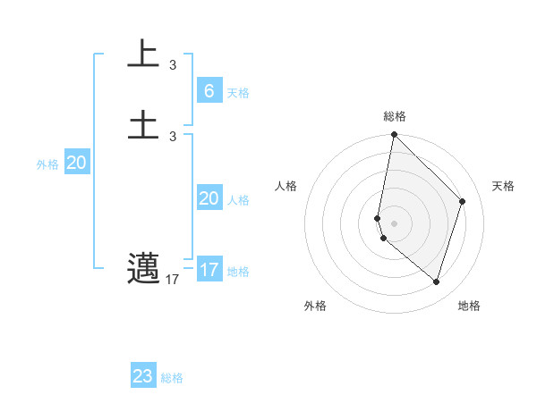 上土 邁さんの総格は23画の5点!