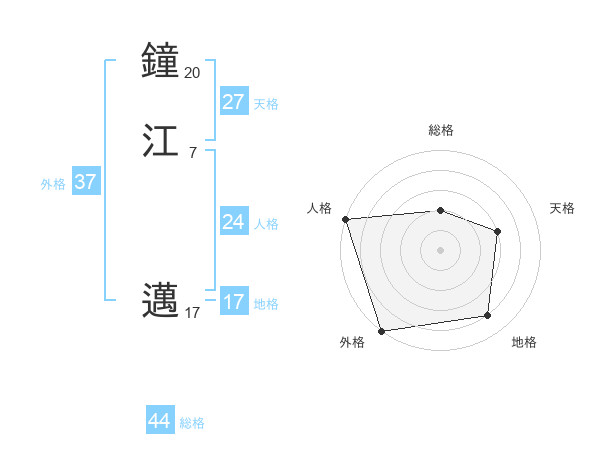 鐘江 邁さんの総格は44画の2点!