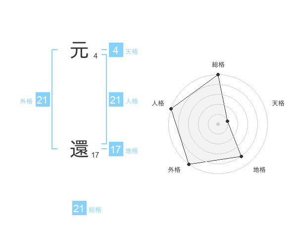 元 還さんの外格は21画の5点!