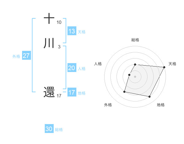 十川 還さんの天格は13画の5点!