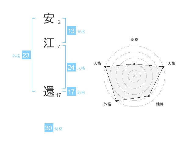 安江 還さんの総格は30画の2点!