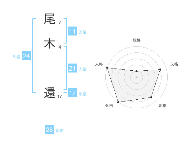 尾木 還さんの天格は11画の4点!