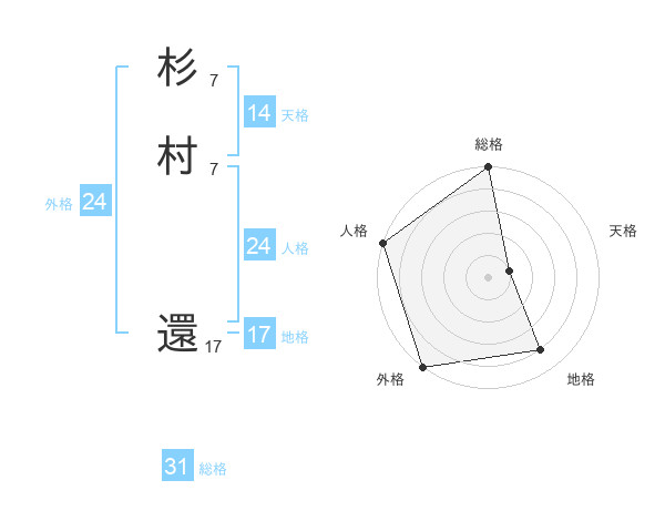 杉村 還さんの外格は24画の5点!