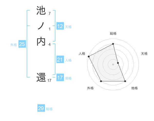 池ノ内 還さんを姓名の画数から五運を鑑定