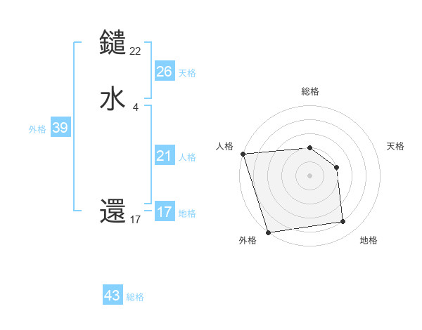 鑓水 還さんの外格は39画の5点!