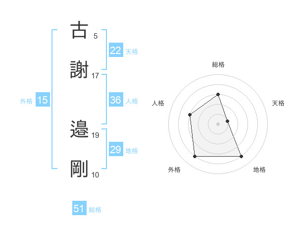 古謝 邉剛さんを姓名の画数から五運を鑑定