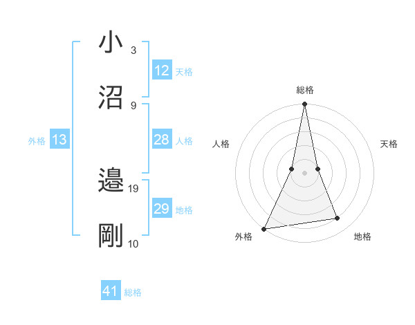 小沼 邉剛さんの外格は13画の5点!