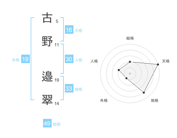 古野 邉翠さんを姓名の画数から五運を鑑定