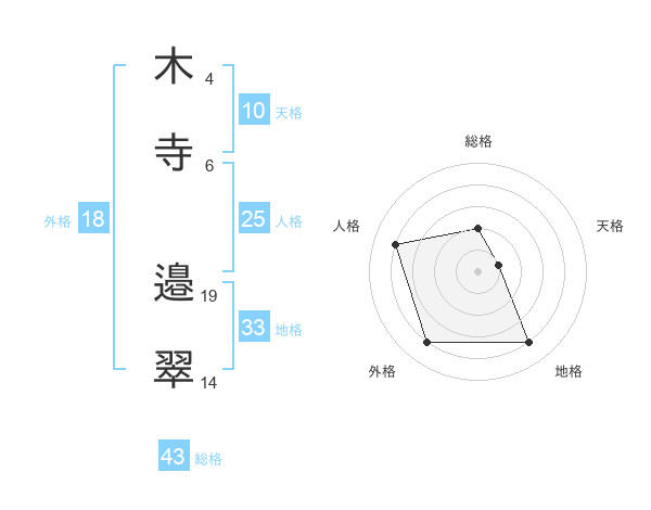木寺 邉翠さんを姓名の画数から五運を鑑定