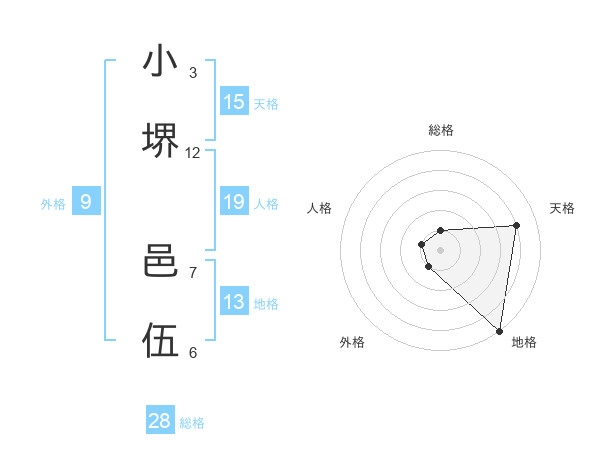 小堺 邑伍さんの地格は13画の5点!