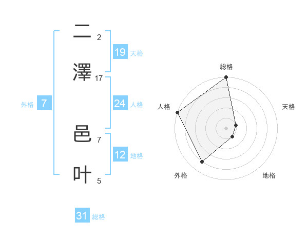 二澤 邑叶さんの総格は31画の5点!