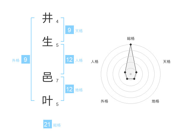 井生 邑叶さんの総格は21画の5点!