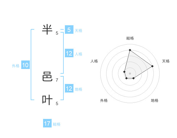 半 邑叶さんの総格は17画の4点!