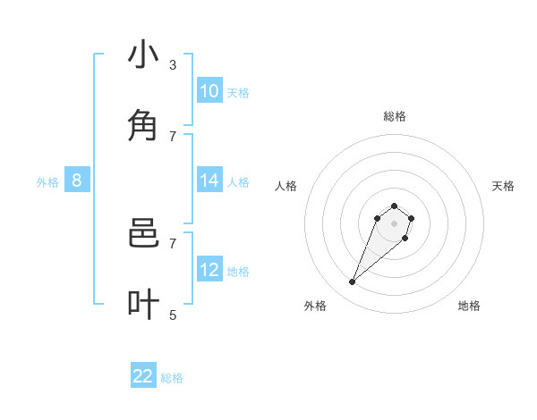 小角 邑叶さんを姓名の画数から五運を鑑定