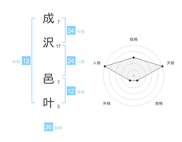 成沢 邑叶さんの天格は24画の5点!