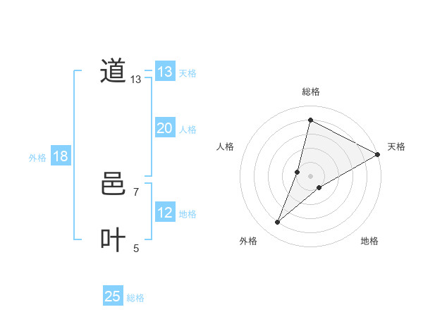 道 邑叶さんの天格は13画の5点!