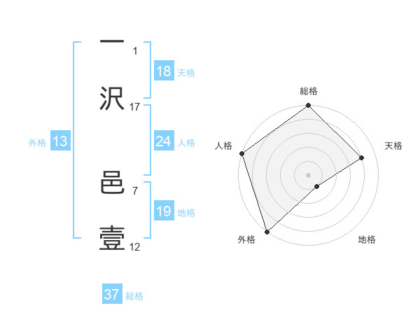 一沢 邑壹さんの総格は37画の5点!