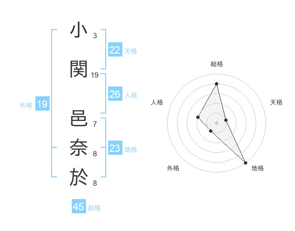小関 邑奈於さんを姓名の画数から五運を鑑定